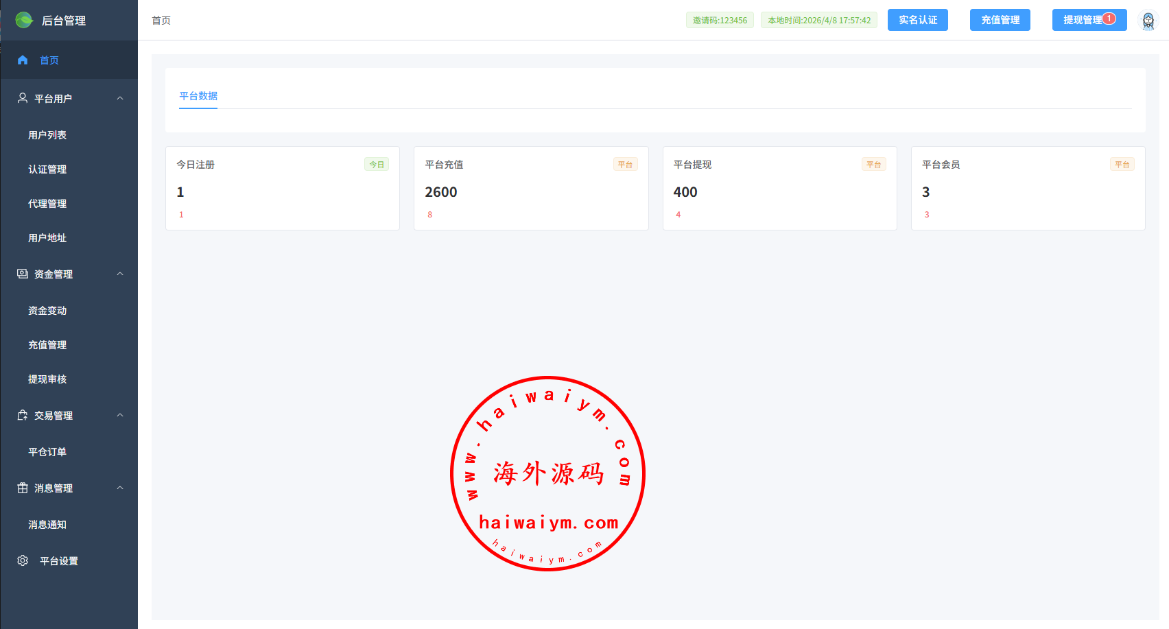 新版JAVA微盘系统,前端多语言,前后台VUE开发开源带源码前端产品支持虚拟币,贵金属,外汇,行情使用免费接口支持信用分,实名认证,消息发送,用户控制等功能