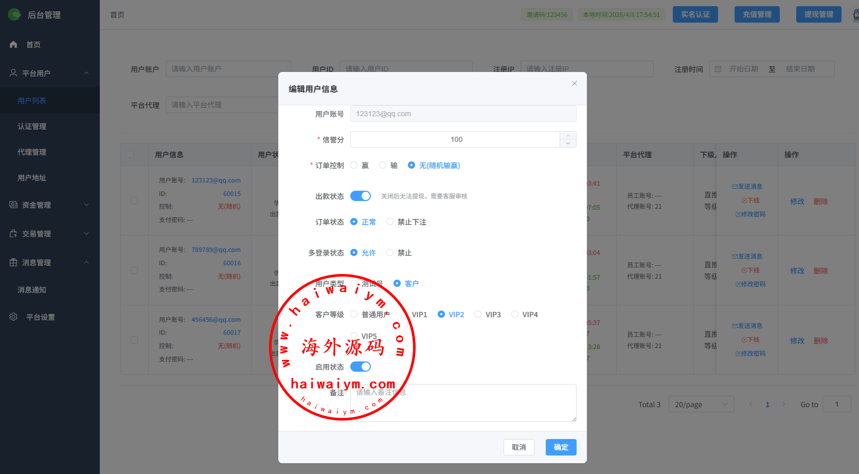 海外虚拟币微盘系统/信用分/实名认证/多语言微交易