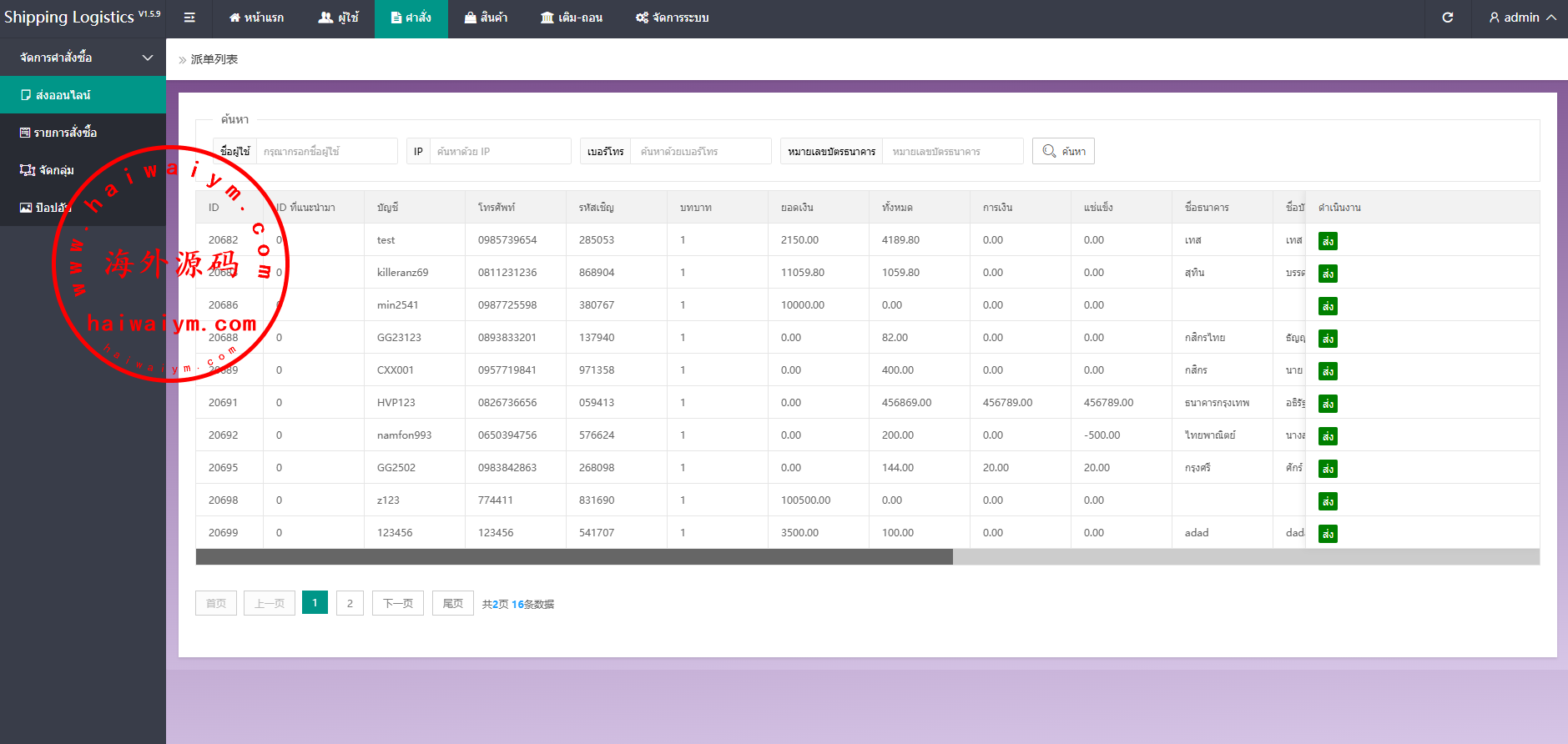 新版UI泰国本土刷单系统,前台均为泰国语言系统是后台手动派单,可以指定订单,支持信用分