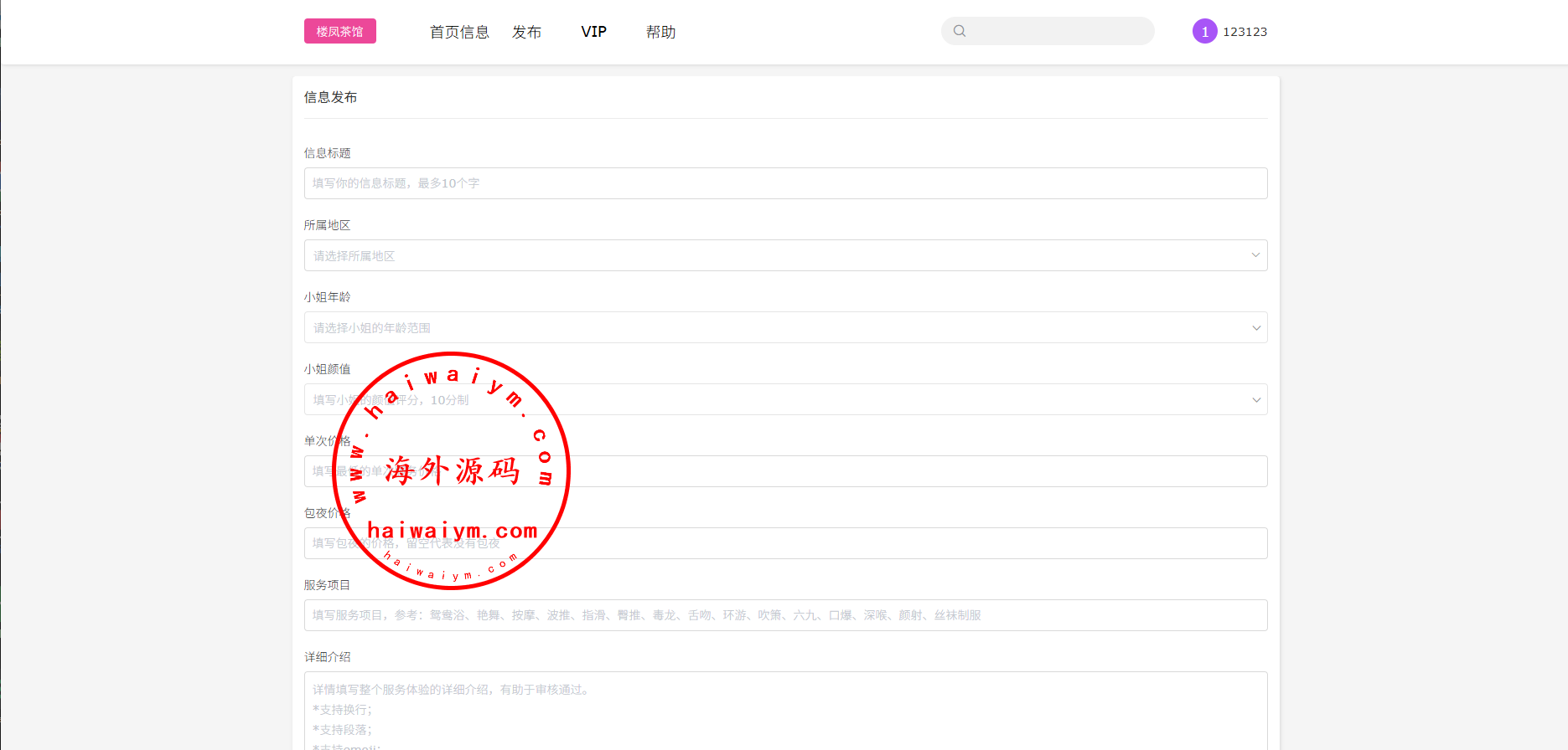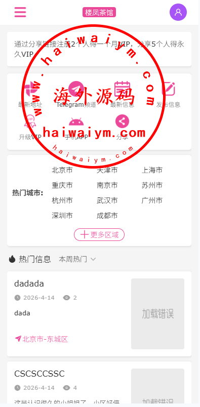 JAVA版同城楼凤系统/楼凤茶馆/信息发布/信息网此套是开源版本,前端uniapp开发电脑手机自适应,后台VUE,服务端JAVA开发全开源