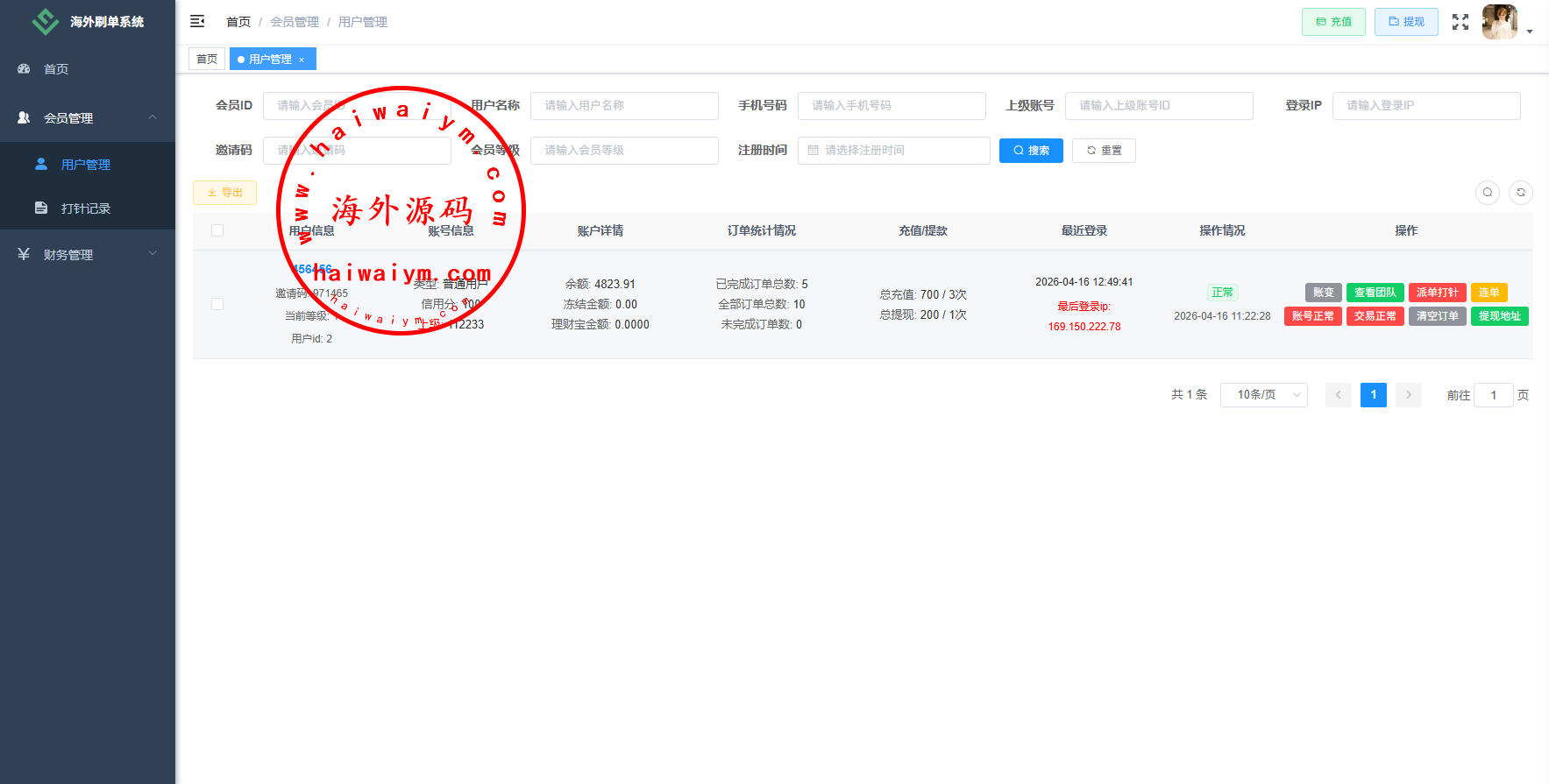 运营版抢单刷单系统/打针/做单/会员跟踪/信誉分
