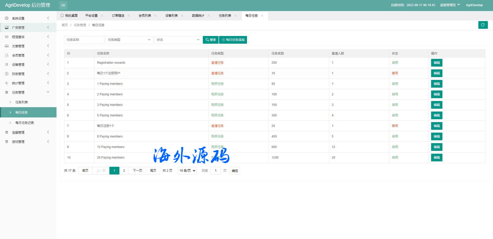 完美版海外投资理财系统/养鸭养牛投资/裂变任务推广/注册奖励每日任务